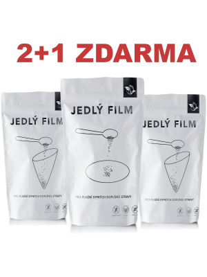Jedlý film dokáže tyto nepříjemnosti s užíváním sypkých doplňků stravy odstranit. Pojme více obsahu než tradiční kapsle a jeho užívání je stejně tak snadné. Jednoduše nasypete prášek do jedlého filmu, zabalíte, ponoříte do vody a spolknete. Tak je to snadné. Několik naplněných jedlých filmů si také můžete dopředu nachystat na celý týden a každý den si vzít jen tolik, kolik potřebujete.