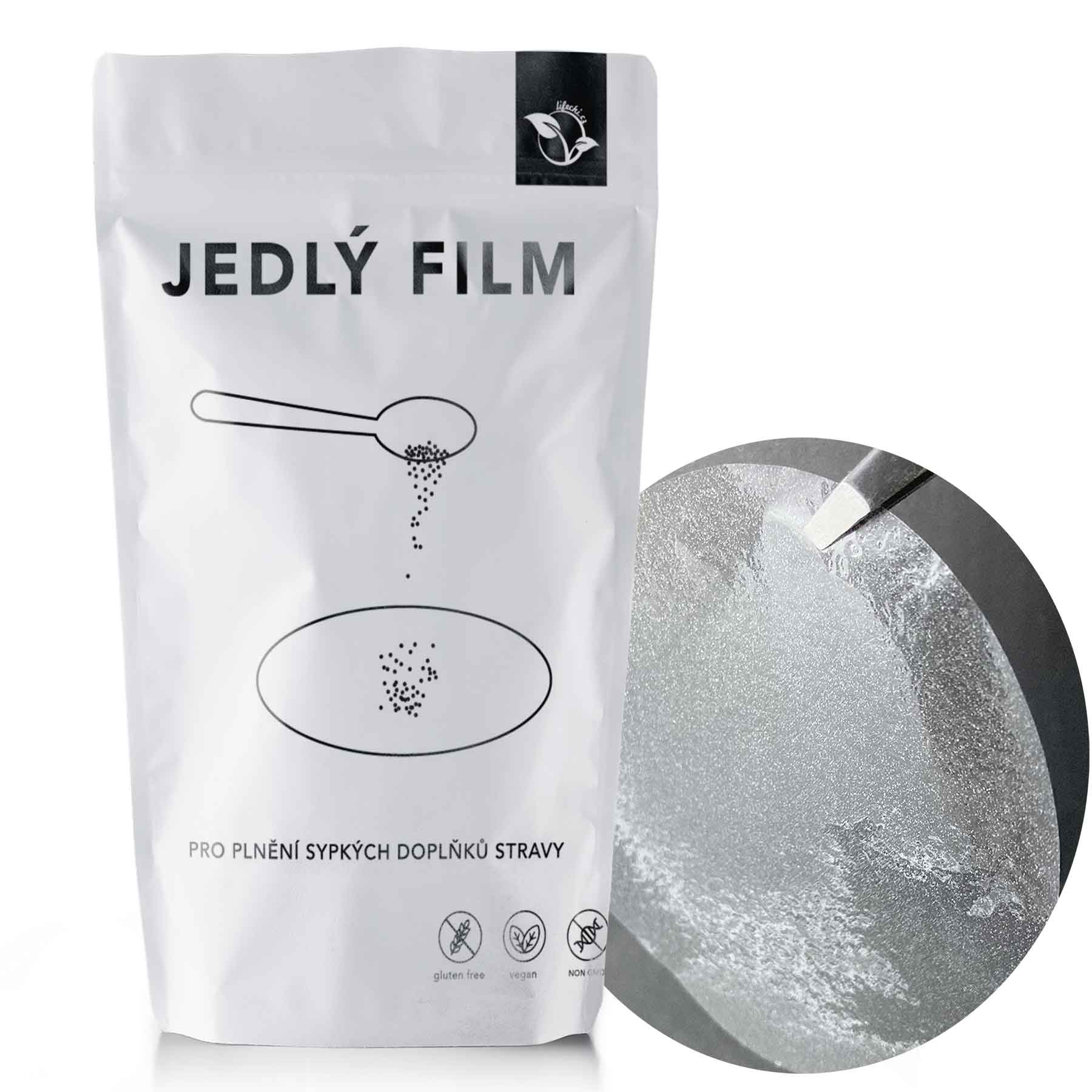 Jedlý film je velice tenký průhledný papírek, vyrobený z bramborového škrobu. Používá se k dávkování bylin, hub, doplňků stravy, léků a jiných oblíbených produktů v práškové formě.
