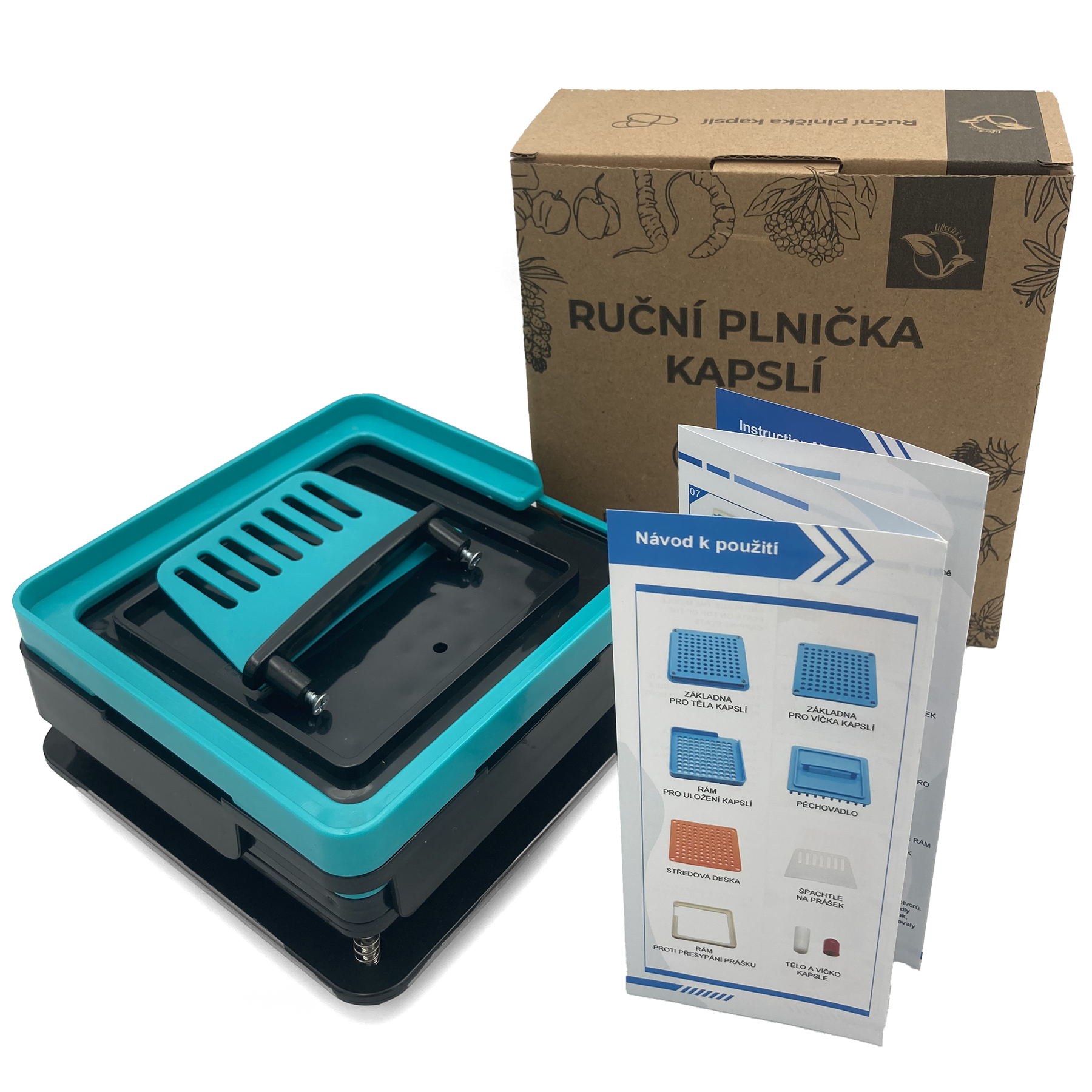 Ruční plnička kapslí "00" pro 100 ks kapslí + 100 ks želatinových kapslí - velikost "00" (rozdělené)